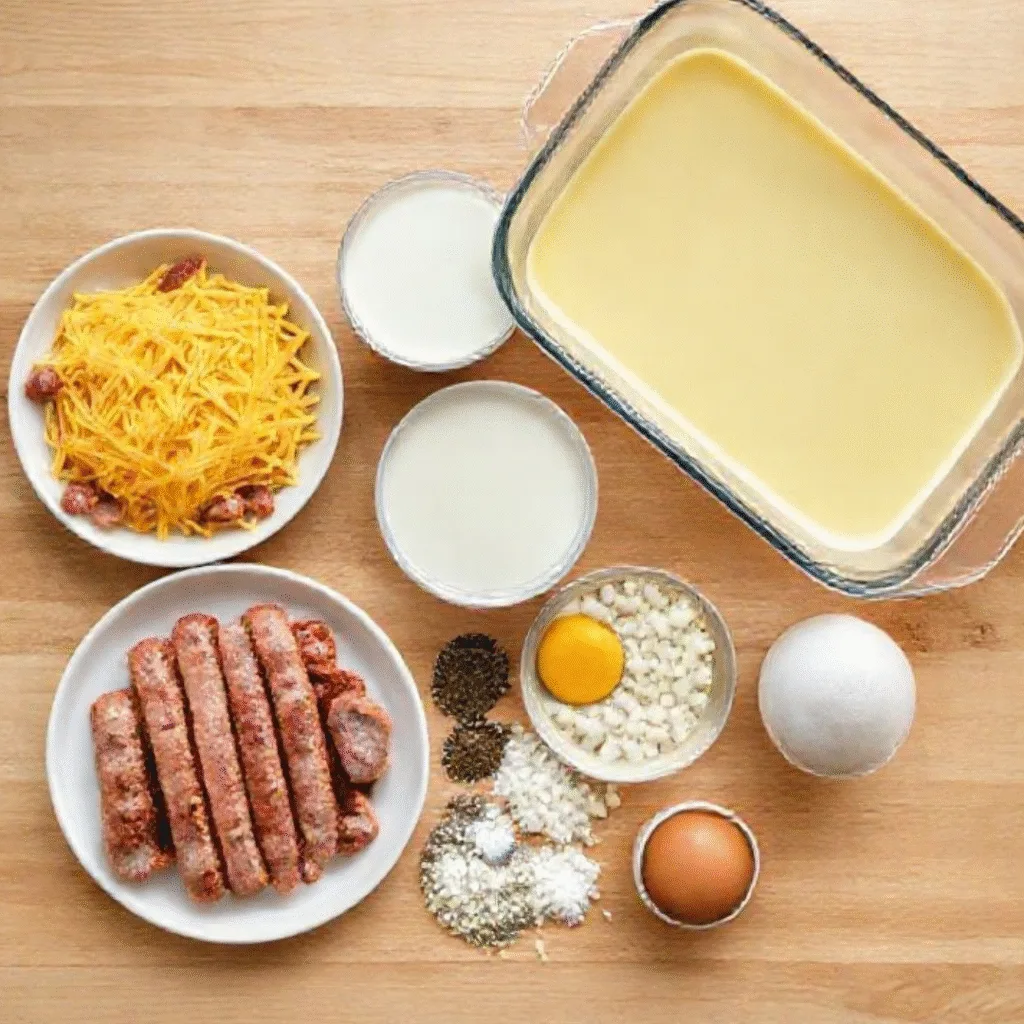 Ingredients for Classic Sausage Egg and Cheese Bake