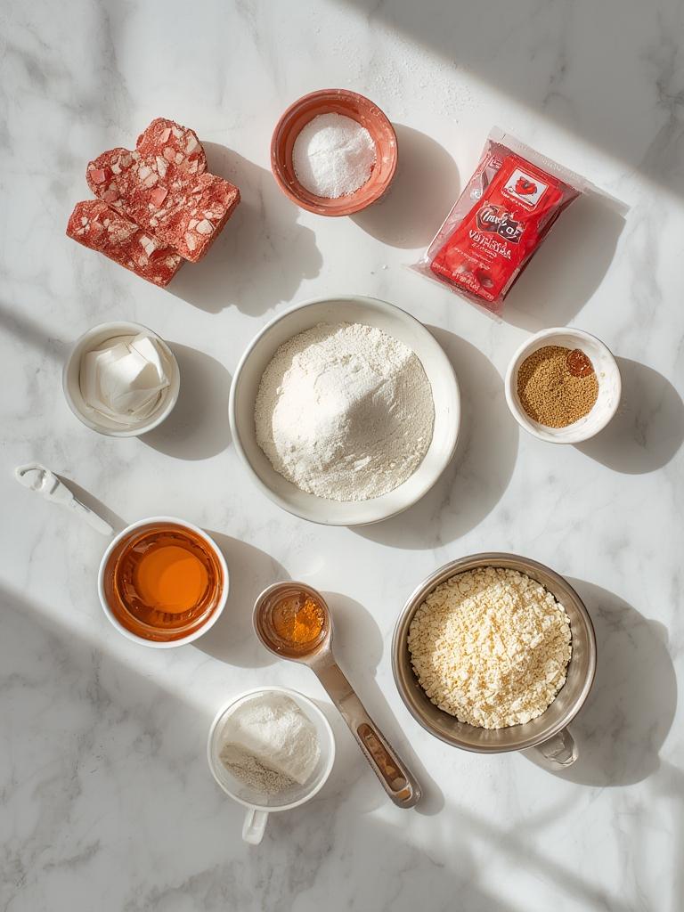 | Pink and red sprinkles | Decoration | Colored sugar, heart-shaped candies, crushed freeze-dried strawberries |